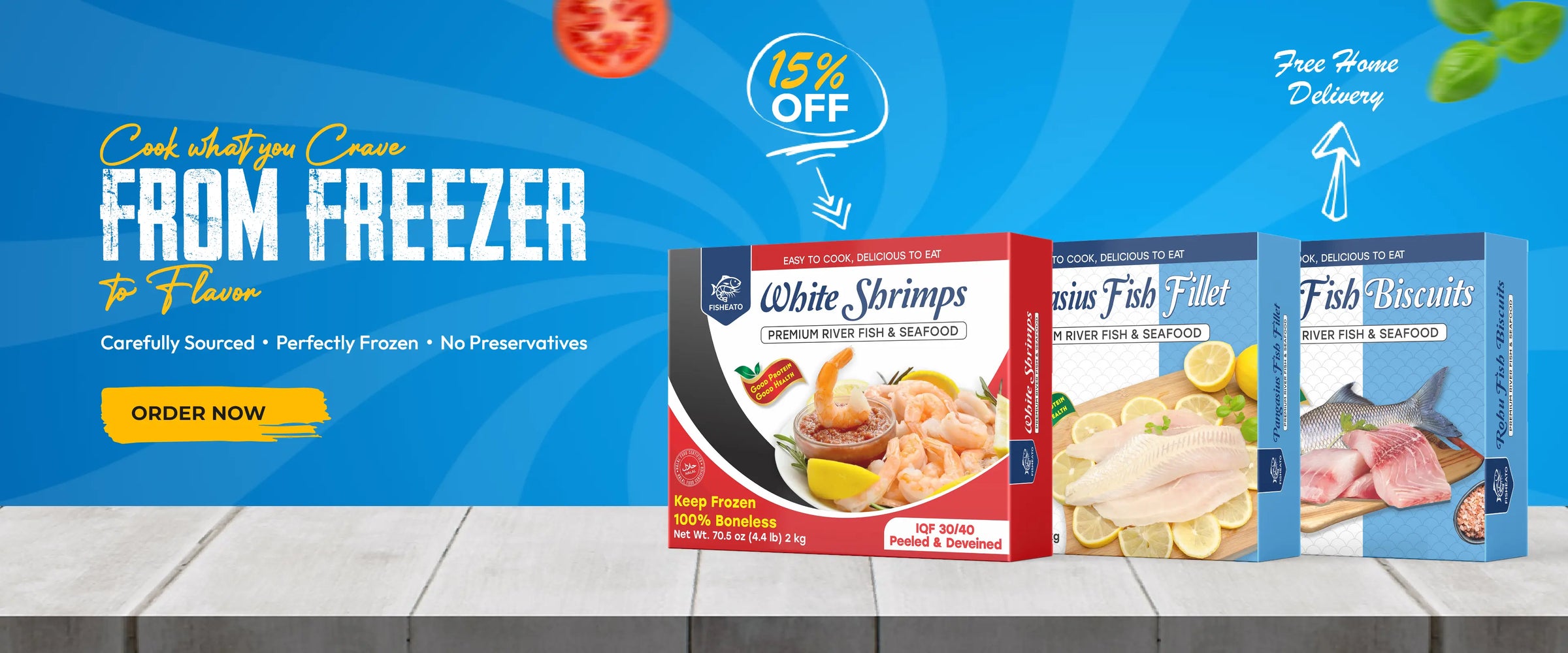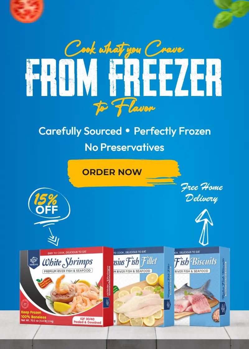 At FISHEATO, we make it easy to enjoy high-quality seafood at home. From soft, flaky fish fillets to juicy prawns and shrimp, everything is carefully cleaned, hygienically packed, and frozen fresh to lock in natural flavor and freshness.